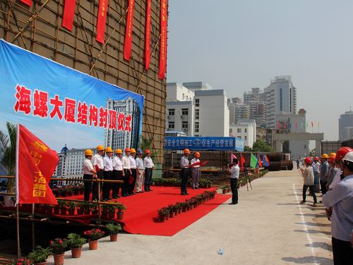 58上午958分,由城建工程技术公司承建的芜湖海螺大厦工程主体结构顺利封顶。芜湖海创置业有限公司总经理于奎光、副总经理王伟、海螺大酒店副总经理阳波、监理公司经理胡学农、十七冶城建工程技术公司经理伍昌国及项目部员工等参加了封顶仪式。