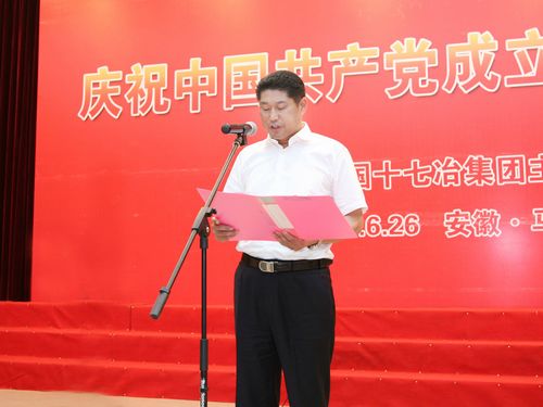 公司党委副书记、总经理喻世功在庆祝大会上发布了中国十七冶集团有限公司“同声相应,善气迎人”的企业道德理念,并要求公司全体员工谨记恪守,做到内化于心,固化于制,外化于行,终化于为,精心培育和打造公司核心竞争力,为公司实现高质量跨越式发展而努力奋斗。