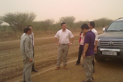411,中国进出口银行主管非洲法语地区副总经理朱瑛一行来到十七冶路桥工程技术公司承建的毛里塔尼亚贫困三角洲Ⅱ标公路项目现场检查指导工作。