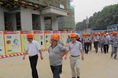 616安徽省安全质量标准化示范工地检查验收专家组在中国十七冶集团总经理助理、中冶置业(安徽)公司总经理王振堂等的陪同下,来到马鞍山向山镇棚户区改造工程项目,对平山地块省标化工地进行检查验收。