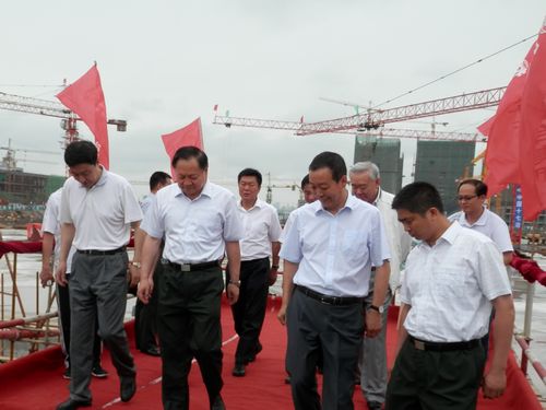 在施工现场,张又侠司令员等省市领导热情地同工程建设者一一握手表示慰问,听取了杨亚洲副市长的工作汇报,并仔细询问了施工进展情况后,对工程项目的优质高速建设表示满意。
