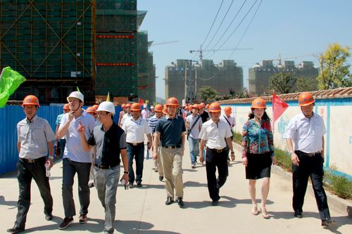 727上午,马鞍山市城市发展投资集团有限责任公司总经理刘宇辉,党工委书记张亚莉,副总经理严斌、钱红梅率市城投集团公司70余名员工组成的观摩团,冒着酷暑来到超山花园廉租房项目和向山镇棚户区改造项目观摩项目建设情况。中国十七冶集团总经理助理、中冶置业(安徽)公司总经理王振堂,城建工程技术公司经理伍昌国等到场欢迎并陪同。