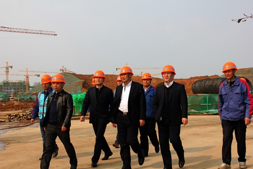 322下午中国十七冶集团董事长、党委书记喻世功副总经理曹永忠到滁州高教科创城科工程项目检查指导工作。
