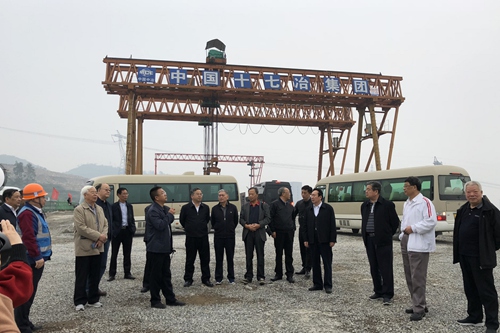 327日下午,贵州省人大常委会原党组书记、副主任肖永安,贵阳市人大常委会党组书记、主任李忠等到中国十七冶集团有限公司交通工程技术分公司承建的贵州息烽县团圆山环线道路建设项目调研。