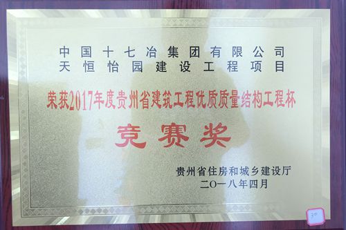5月23日,由中国十七冶集团有限公司城建工程技术分公司承建的贵州天恒怡园工程项目荣获“2017年贵州建筑安全文明施工样板工地”、“2017年贵州省建筑工程优质质量结构工程杯”双优奖项。5月24日,业主单位贵州天恒房地产开发有限公司特致信表扬。