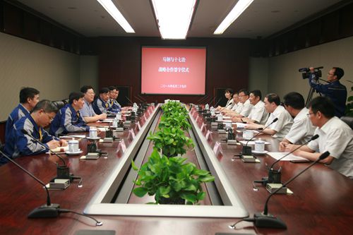 529日下午,中国十七冶集团与马钢集团在马钢总部签署战略合作框架协议,并进行了深入交流。在马钢集团党委书记、董事长魏尧,马钢集团总经理、马钢股份公司董事长丁毅;公司党委书记、董事长喻世功,纪委书记、副总经理蔡进的共同见证下,马钢集团副总经理任天宝与公司副总经理唐克斌分别在战略合作框架协议上签字。