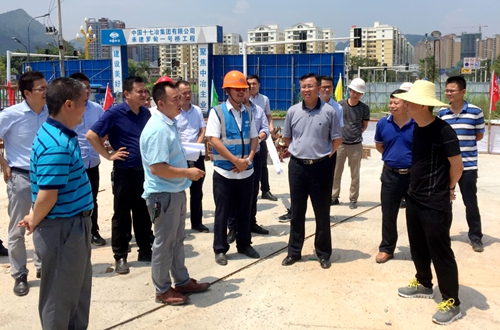 8月10日,贵州省罗甸县委书记杨朝伟到中国十七冶集团交通工程技术分公司承建的贵州罗甸县城市综合建设五桥二路项目调研,罗甸县委常委、常务副县长朱泉,副县长陈豪住建局长罗钦参加调研。