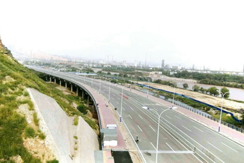 兰州市北滨河路西延线七B标项目地处“背靠老虎山,坐拥蛤蟆滩,前有古黄河,后有火焰山”的黄河滩上。项目采用EPC总承包方式,全长1.5千米,主要工程内容包括道路工程、桥涵工程、配排水工程、交通工程、照明工程、绿化工程等。