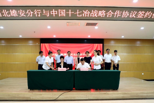 9月11日,中国十七冶集团与中国农业银行雄安分行签订战略合作协议。中国农业银行大客户部总裁求夏雨、副总裁邢凤芹,河北分行副行长崔金涛、大客户部总经理江殿光,河北分行副行长、河北雄安分行副行长王雪,中国中冶副总裁、总会计师邹宏英出席会议。会议由中国农业银行雄安分行副行长胡敏主持。王雪副行长与公司公司总会计师李文代表双方签署银企战略合作协议。