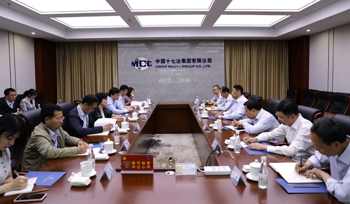 5月13日下午,中国十七冶集团董事长、党委书记喻世功在总部会见来访的中国农业银行总行大客户部副总经理邢凤芹。