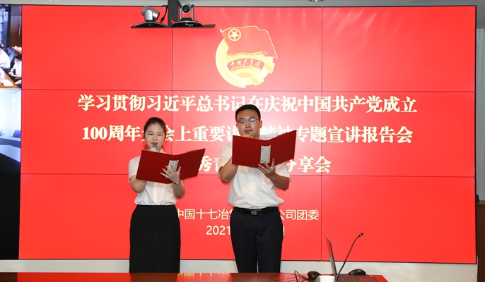 会上,青年代表朗诵了《共青团员和少先队员代表集体致献词》。2020年杰出青年冯浩、2021年青年岗位能手刘志华分享了他们在基层项目、海外一线的工作经历与先进事迹,鼓励十七冶新一代青年们开拓进取、爱岗敬业、自强不息、甘于奉献。