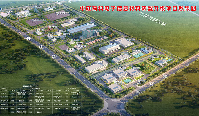 中硅高科电子信息材料转型升级项目位于河南省洛阳市孟津县华阳产业集聚区内,任庄路以东、石化路以南。项目占地面积为165184.28平方米,约247.77亩,预留用地面积为36731.67平方米,约55.10亩,工程包含区熔级多晶硅还原炉、供料及出料系统、供电系统、干法分离单元、压缩单元、氢气净化单元、原料精馏提纯和干法精馏塔、多晶硅高纯储罐、硅基电子气体储罐,含冷冻站、冷冻水站、空分空压站、高纯气体纯化装置等。
