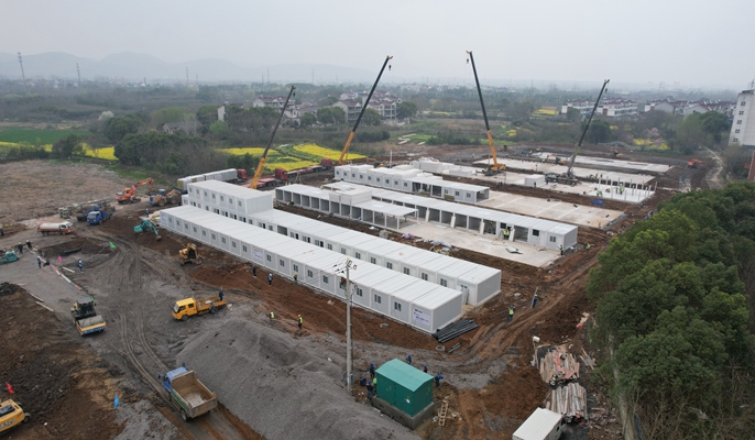 在接到含山县政府修建疫情防控隔离点的通知后,路桥分公司含山项目部火速集结力量、昼夜鏖战、全力推进项目工程建设。截至21日,现场场地平整、碎石基础铺筑、板房基础浇筑、大门坡道施工完成;连廊浇筑完成三道,环形通道完成70%;雨污水管道施工完成,给水管道完成90%,电力管线施工完成90%;已吊装完成144个集装箱,内部装修完成48间。7台挖机、4台吊车、3台装载机、2台压路机设备日以继夜施工大干,120余名施工人员日夜驻扎现场,切实为含山抗疫工作注入一支强心针。