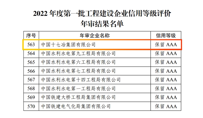 百尺竿头须进步,千里足下贵持恒。中国十七冶集团本年度还荣获了由中国建筑业协会评定的“信用AAA等级企业”称号。公司将以此为契机,坚持弘扬诚信文化,持续深入推进“合规管理提升年”行动,提升信用配置资源、信用化解风险、信用培育品牌的能力,进一步完善诚信建设长效机制,以实际行动落实好党的二十大关于推进诚信建设的新部署。