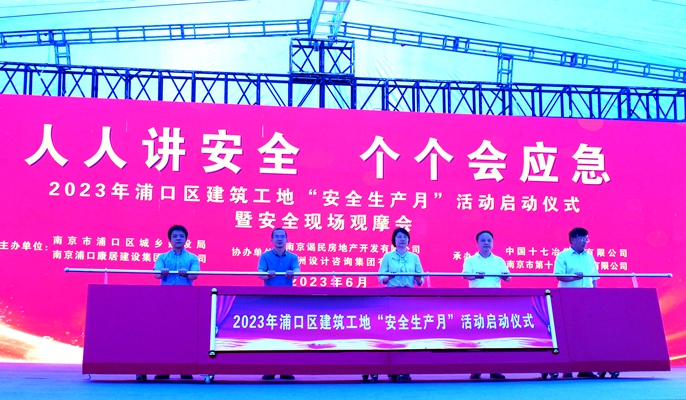 6月2日,中国十七冶江苏分公司高新3号地项目成功举办南京浦口区“安全生产月”活动启动仪式暨安全现场观摩会。江苏省建筑安全监督总站副站长龚自立,南京市浦口区副区长刘园,浦口区城乡建设局党委书记、局长周进达,康居集团副总经理徐昊,中国十七冶江苏分公司领导班子及浦口区各建筑单位代表共计500余人参加活动。