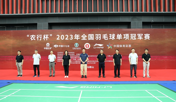 7月9日上午,2023年“农行杯”全国羽毛球单项冠军赛在马鞍山顺利开幕。中国羽毛球协会副主席兼秘书长王伟、安徽省体育总会副主席兼省羽毛球协会主席梁绿林、马鞍山市副市长阚靑鹤、中国十七冶集团党委委员、副总经理、工会主席魏致家,马鞍山市政府副秘书长何俊、安徽省羽毛球协会副主席、秘书长袁兵、马鞍山农业银行行长卢军、马鞍山市体育局局长陈明亚、副局长王勇出席开幕式。