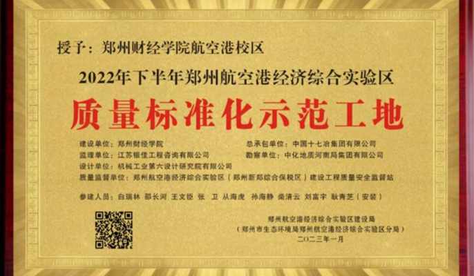 郑州财经学院项目获评“郑州航空港区质量标准化示范工地”