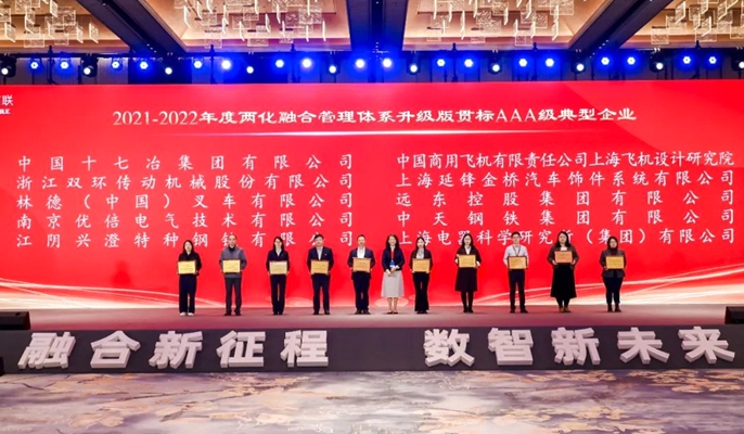 中国十七冶作为全国首批通过两化融合管理体系评定、安徽省首家通过两化融合管理体系AAA级评定的建筑业企业,两化融合推进工作一直走在全国前列。近年来,公司承载着做深做实两化融合大文章、加快数字化转型升级的理想与追求,在两化融合创新实践中不断提升高度、拓展宽度、加大力度,信息化建设践行两化融合全局、全要素、全过程的管理体系标准,重点关注信息技术与施工流程及管控的适配,努力解决施工管理的盲点和痛点,通过信息化与管理的不断融合,持续提升项目质量、安全、效益和品质,助力高质量发展,加快建设具有全球竞争力的世界一流企业。2021年,公司荣获国资委“2020年国有企业数字化转型两化融合管理体系类优秀案例奖”,成为中国五矿唯一入选子企业;2022年申报的《两化融合管理体系促进企业数字化转型发展》荣获第十八届安徽省企业管理现代化创新成果二等奖。