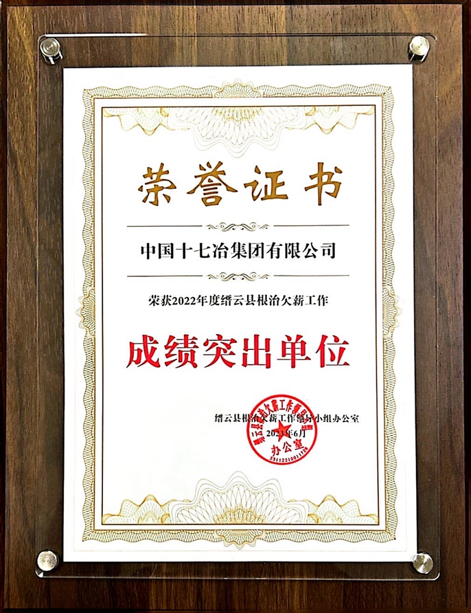 近日,浙江省缙云县召开根治欠薪工作领导小组会议,表彰了7家劳动保障守法诚信单位,中国十七冶集团荣获“劳动保障守法诚信A级单位”与“2022年度缙云县根治欠薪工作成绩突出单位”称号。