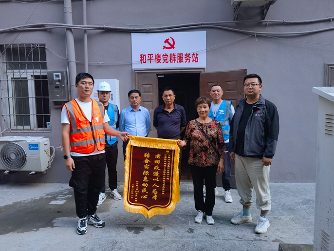 10月19日,马鞍山市和平楼社区区民向中国十七冶城建分公司花山区2023年桃源路街道、沙塘路街道老旧小区整治工程项目部赠送锦旗,对项目全体管理人员为小区改造所作贡献表示感谢。