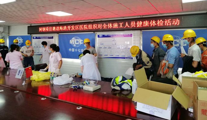 6月20日,中国十七冶集团冶金工程技术分公司河钢乐亭钢铁项目组织医护人员到现场为140多名施工人员进行体检。