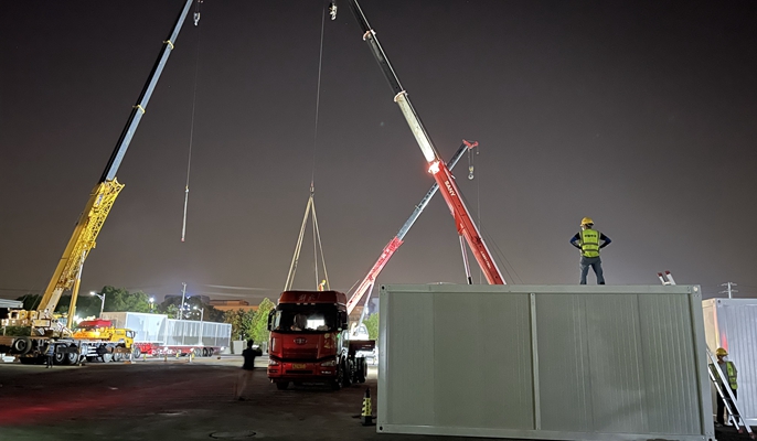 上海市嘉定区兴邦路隔离点二期东区集装箱开始吊装