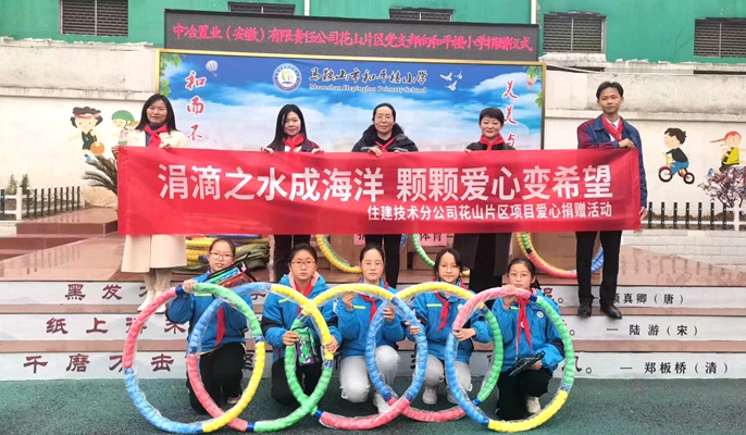 为积极响应党和国家“爱心助学”的工作号召,弘扬社会正能量,3月30日,中国十七冶马鞍山花山片区项目组织开展“凝心聚爱、共创美好”爱心助学活动,向市和平楼小学捐赠体育器材。
